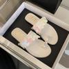 fashion Casual Women Slippers Clip Toe Summer Outside Beige Black Shallow Slip On Flat Low Heeled Ladies Party Dress Shoes Woman 35-39