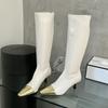 fashion Fashion Women Knee High Boots Pointed Toe Sock Booties Thin High Heels Black White Mixed Color Knee Sock Botas Stretch Shoes 39
