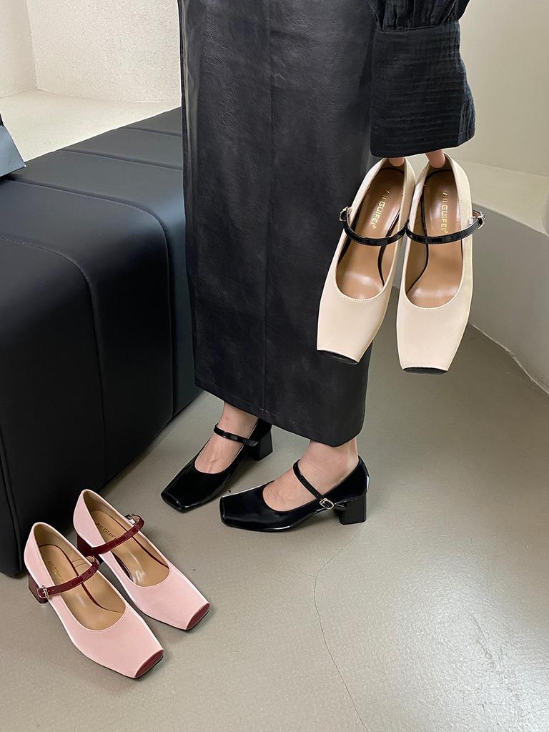 fashion Square Toe Women Pumps 2024 New Arrivals Fashion Thick High Heels Fashion Party Pumps Dress Shoes Woman Size 35-40 Pink Black