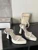fashion Pointed Toe Women Sandals Platform Sandals Black White Silver Ankle Strap Thick High Heels Summer Slides Shoes Woman 35-39