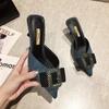 Mote 2024 Damesko Tådeksel Sommerfuglknute Mules For Kvinner Tøfler Fritid Firkantet hæl Loafers Slides Med Luksus Spiss