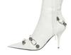 Fashion Hot Sales High Thin Heeled Ankle Boots for Women Metal Decor Rivet Fringed Zip Ppinted Toed Motorcycle Lady Booties Women Shoes