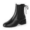 Fashion Leather Ankle Boots Women Mid Heel Chelsea Boots Autumn 2024 New Fashion Round Toe Slip on High Heel Elastic Short Boots Botines