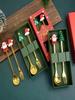 Juleskjeer Gafler Sett Rustfritt Stål Gull Sølv Kaffeskjeer Søt Elg Juletre Pepperkakemann Salatskje Dessertgaffel