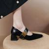 Women's Summer Footwear Gothic Mary Jane Shoes for Woman 2024 Japanese Style Lolita Office Pointed Toe with Medium Heels Black A
