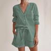 Summer Double Layer Gauze Long Sleeved Shorts Fashionable White Women's Casual Suit