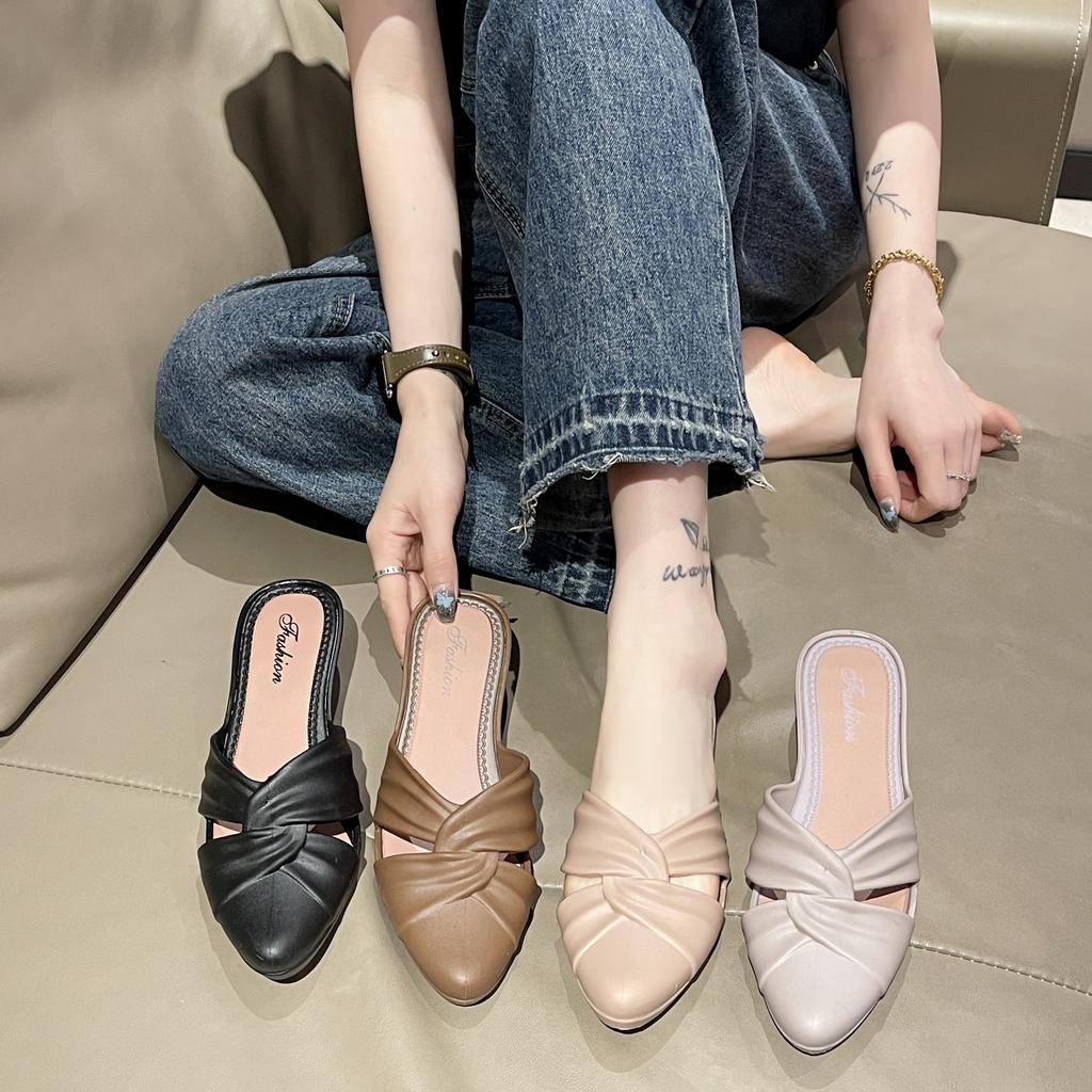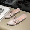 Women's New Summer PVC Fashion Solid Color Pointed Head Half Drag Thick Heel Women's Shoes Hollow Out Low Heel Sandals