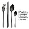 12/16/20/24/32Pcs Black Cutlery Stainless Steel Western Tableware Smooth Handle Fork Spoon Mirror Dinner Set Kitchen Utensils