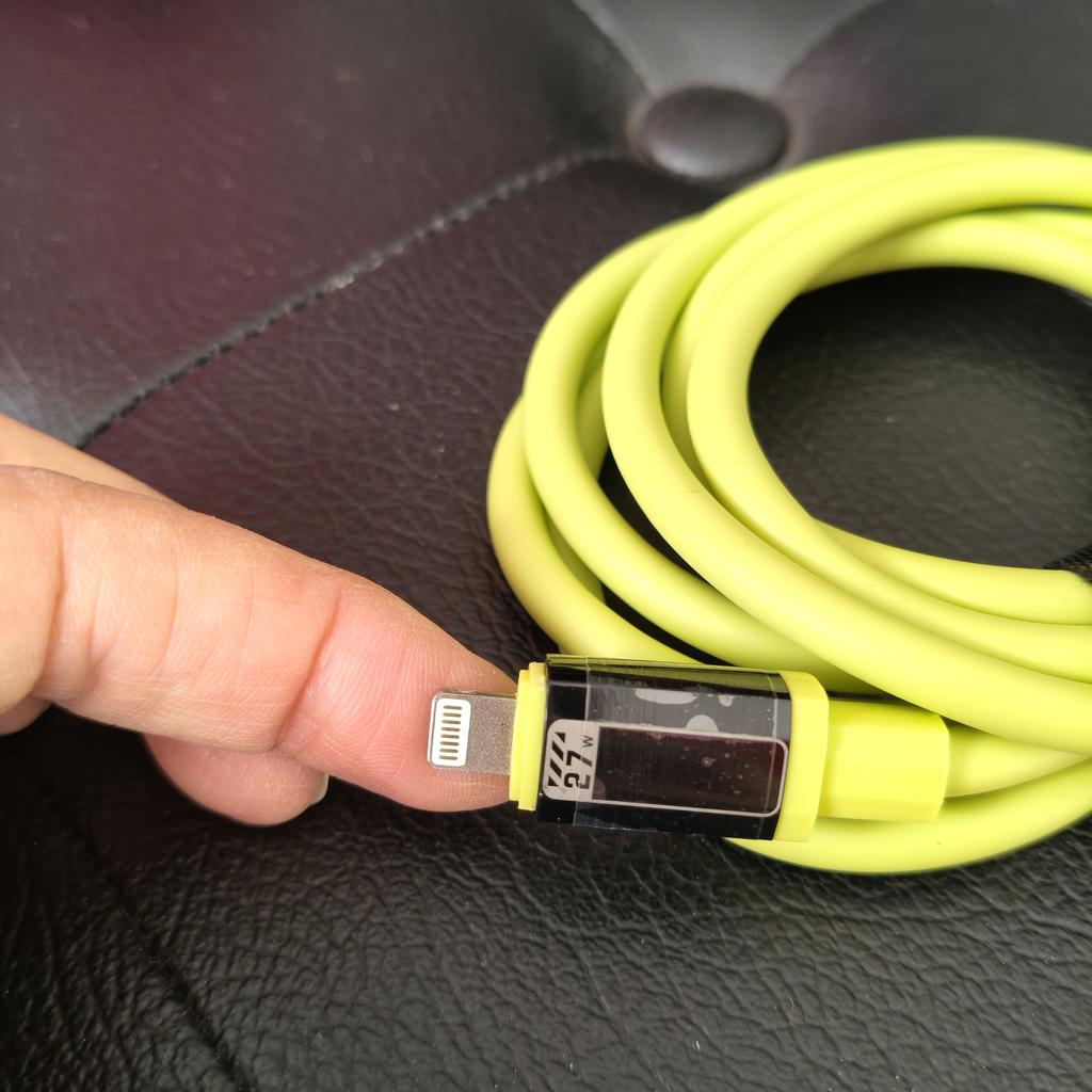 USB-KABEL Limegrønn hurtigladekabel i PVC og kobber som alltid bør være for hånden. Ankommet i Italia på 16 dager med sporet forsendelse, ankom intakt. Emballasje ziplock-plastpose. Kabellengde: 1 ,5 meter Kabelen er veldig fleksibel. Prisen er egentlig veldig rimelig Anbefalt kjøp 👌