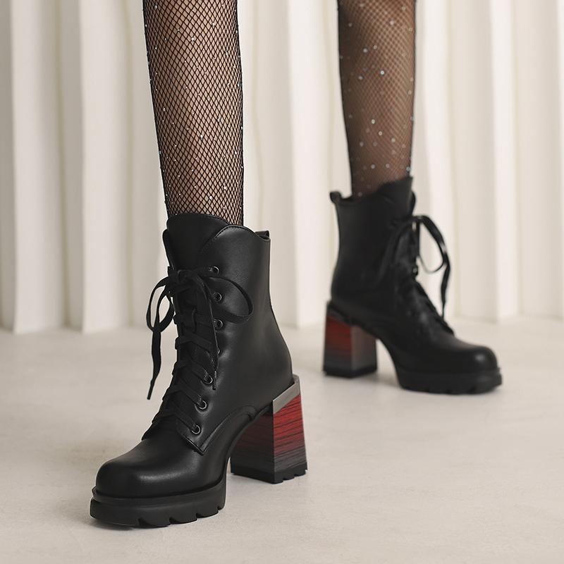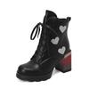 Korte damehøye hæler høst og vinter nye tykkhælede korte støvletter i britisk stil i stor størrelse