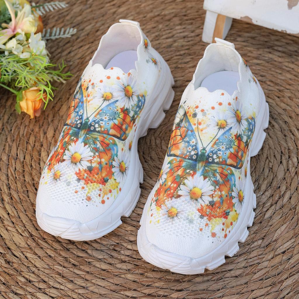 Casual sports shoes women's butterfly pattern lace ethnic style fly-woven sports shoes socks shoes