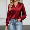 Damesateng plissert langermet topp med V-hals, avslappet løs tonet pendlerskjorte