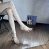 Mote Firkanttå Dames Høye Hæler Fest Åpen Tå Dame Pumps Sommer Spennesko Kvinne En-stropp Tynne Hæler Damesandaler