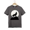 Men's Black 200G Heat Transfer Printed Crew Neck Short Sleeve T-Shirt - Wolf Howling Moon Horror Pattern