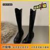 20 autumn and winter new versatile but knee-thin knight boots long boots flat-bottomed round head zipper flat-bottomed high boots women