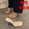 French rhinestone transparent crystal heel beautiful sandals women's summer thick heel slippers high heels wear sandals with skirt