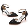 7cm Thin Heeled Large Size Sandals Banquet Women's Shoes Rhinestone Pointed Toe High Heeled Sandals Satin Dress Long Skirt Shoes