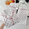 GMXIA Homewear Rolled Edge V-neck Long-sleeved Pajamas Women Can Be Worn Outside Trousers Two-piece Set