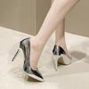 Størrelse stor stiletto høyhæl damesko vår og høst 2025 ny mote spiss tå lett utringning enkle sko sølv sexy damesko