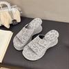 Wedge heel heel heightened thick-soled transparent one-word slippers women's shoes wear 2025 summer new fashion temperament cool slippers
