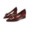 Coarse heel single shoes women's middle heel square heel new light mouth satin gentle shoes red wedding shoes pointed high heels