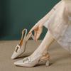 Baotou sandals women's square head one-word buckle high heels new leather thick heel empty single shoes