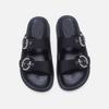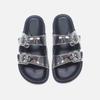 Thick-soled one-word slippers for women's summer wear, new bright diamond round buckle flat-heeled casual cool slippers