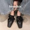 Cowhide version ballet style lace-up Mary Jane shoes new sweet sister small leather shoes square head ballet
