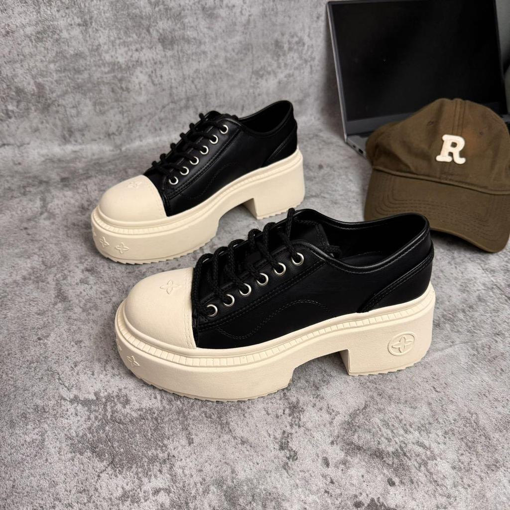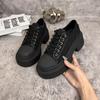 Women's Platform Cross Strap Derby Shoes - Chunky Sole, Genuine Leather, Canvas, Color Block, Height Increasing, Versatile, Petite Friendly.