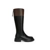 Experience a perfect blend of style and functionality with these women's riding boots. Crafted from premium cow leather, they feature a chic colorblock design that adds a touch of flair to any outfit. These boots are equipped with a sturdy rubber sole, ensuring durability and a reliable grip for all your adventures. The cotton lining provides added comfort, while the round toe and thick sole offer both style and support. Convenient back zippers complete the design, making these boots easy to slip on and off, perfect for the modern, fashion-forward woman.