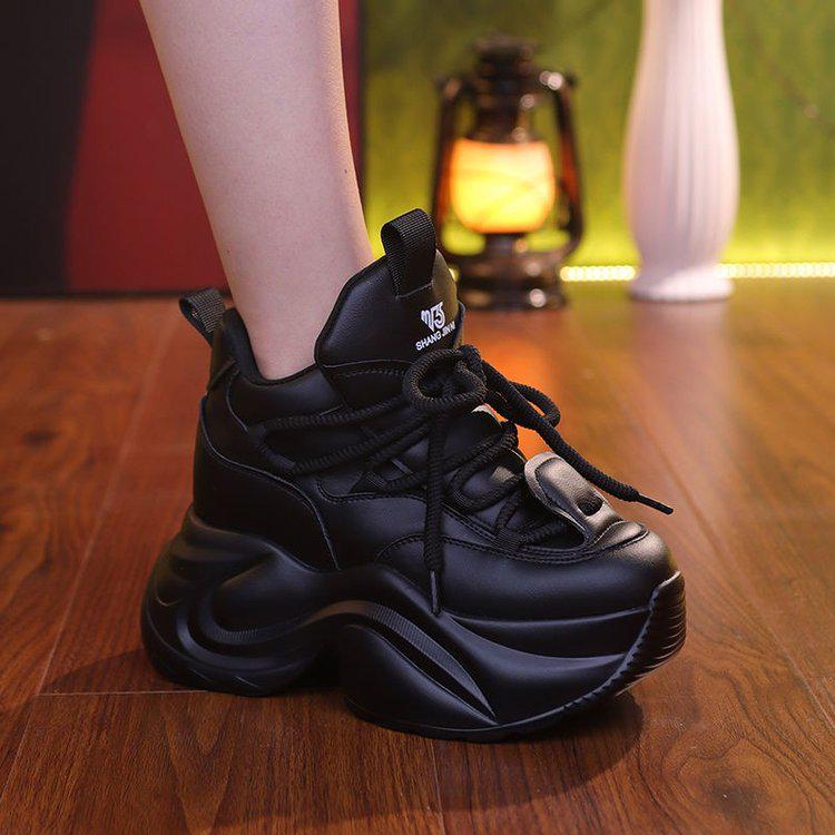 Women's Stylish Platform Dad Shoes - 2024 Autumn Collection, Casual Thick-Soled Leather with Inner Height Boost