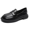 Step into timeless elegance with these women's black leather loafers, inspired by classic British style. Crafted with durable PU leather, these loafers feature a thick sole and chunky heel, ensuring both comfort and a stylish lift. The versatile two-wear design allows for flexible styling, while the round toe adds a touch of sophistication. Inside, a microfiber insole offers a plush walking experience. Ideal for the Spring 2025 season, these loafers effortlessly blend fashion with functionality.