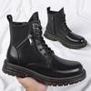 Martin boots men's side zipper men's high-top leather boots trendy locomotive boots cowhide high boots velvet boots riding boots