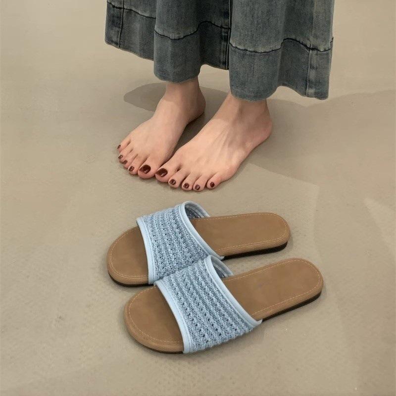 Fashion comfortable versatile new woven sandals one-word slippers beach casual versatile cool slippers women