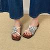 Thick-bottomed cross-strapped square-toed open-toed cool slippers for women's outerwear with skirt, wedge heel one-word slippers