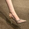 New pointed rhinestone high heels women's silver sandals empty feet stiletto shoes