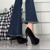 Semsket skinn fin hæl allsidig mote vanntett bord høyhæl temperament svart rød såle pen kvinne enkeltsko kvinner
