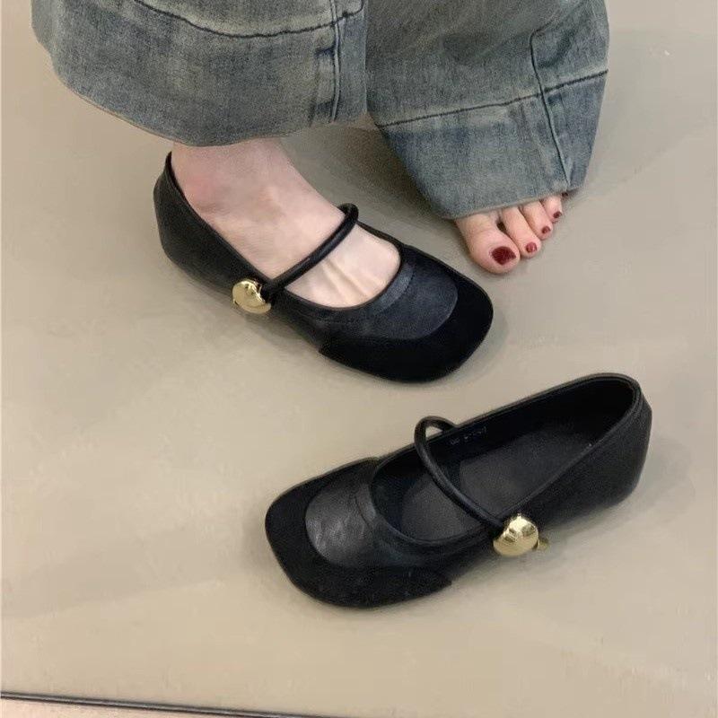 Gentle shoes one-word with splicing round head inner height increase Mary Jane ballet shoes single shoes