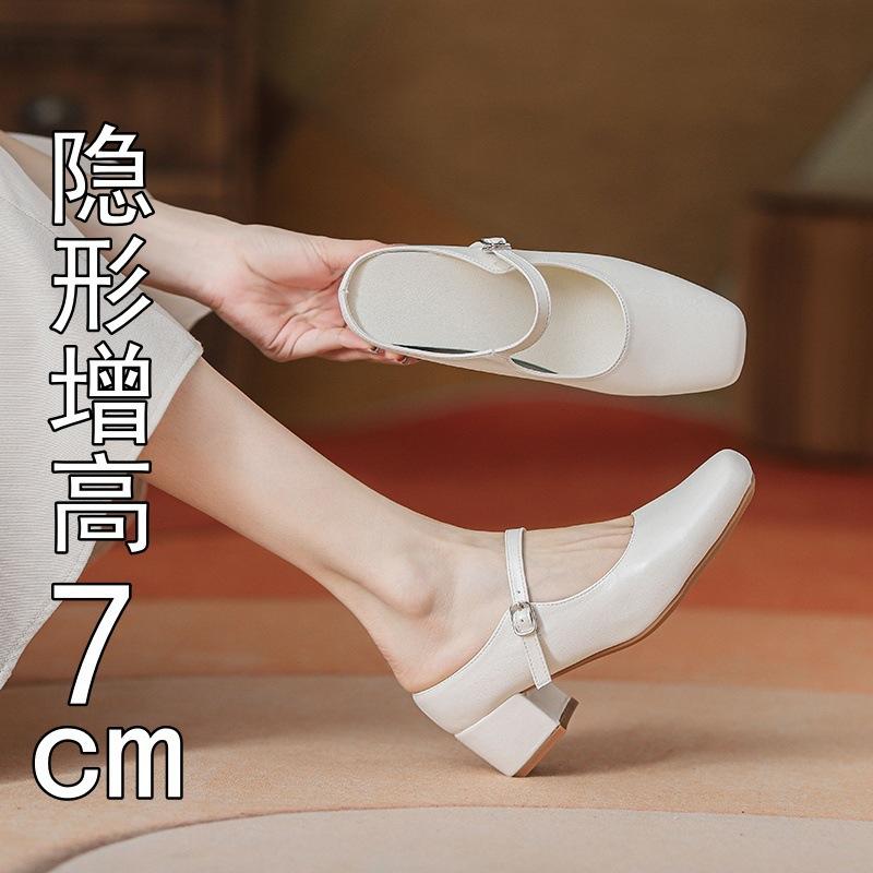 Sandals silver thick heel square head light mouth single shoes women's shoes new small inner height increase outer wear
