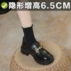 Inner height increase Small black female British metal buckle Small leather shoes Platform Doudou single shoes