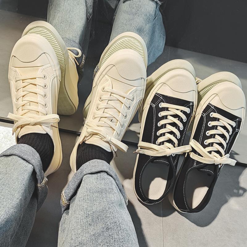Spring new milky white breathable canvas shoes men's board shoes versatile little white shoes trendy casual shoes men's shoes