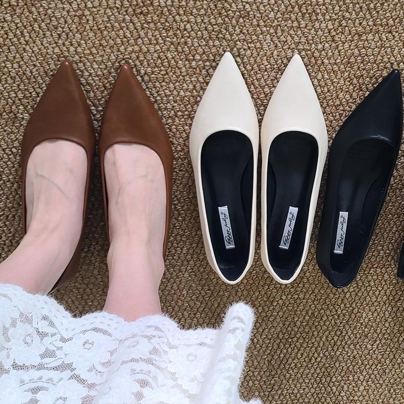 thick heel 3CM new low heel pointed low heel flat shoes shallow mouth four seasons versatile women's shoes high heels