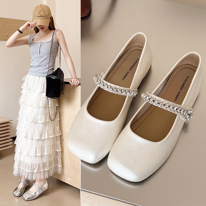 Beautiful French flat silver single shoes women's 2025 new summer skirt Mary Jane shoes small leather shoes evening shoes