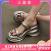 Thick-soled heightening word with sandals women's 2025 summer new outer wear fashionable and versatile casual not tired foot slippers tide