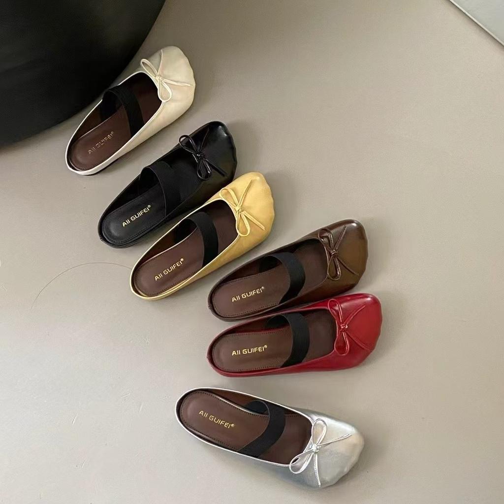 Spring and summer new cat claw head soft leather soft bottom retro casual simple half drag flat bottom one pedal cool slippers women