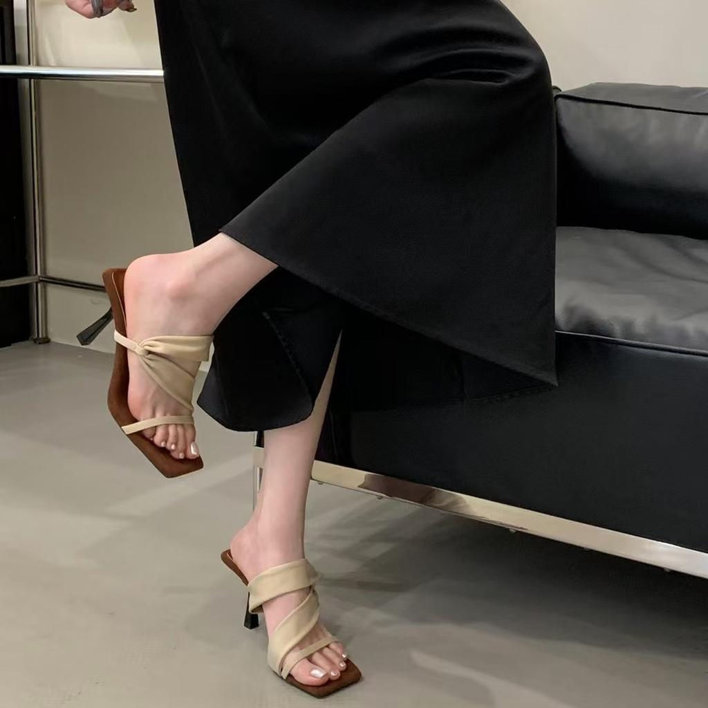Beautiful high heels women's head sexy word with sandals temperament retro heightening cool slippers