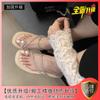 Fairy style temperament thick heel set toe pearl cool slippers female outer wear 2025 summer rhinestone medium heel Roman toe French