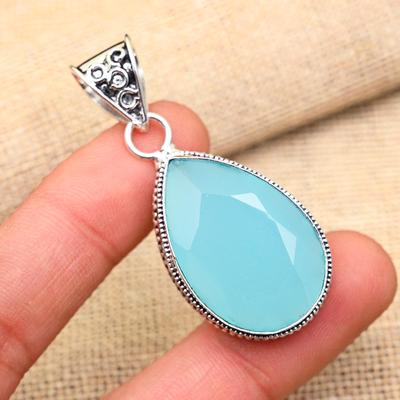Blå kalsedon edelsten solid 925 sterlingsølv håndlagde smykker sjarmerende anheng