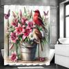 New Chinese Style Floral Red Bird and Fruit Shower Curtain, Bathroom Decorative Shower Curtain, Waterproof Shower Curtain with H