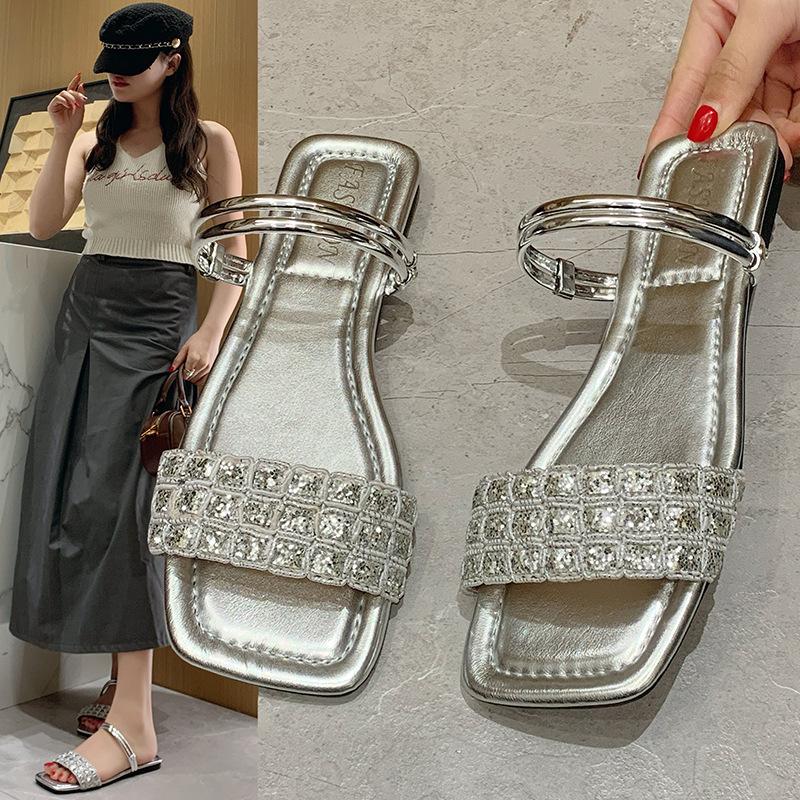 New solid color rhinestone with fashionable outer wear beach casual slippers
